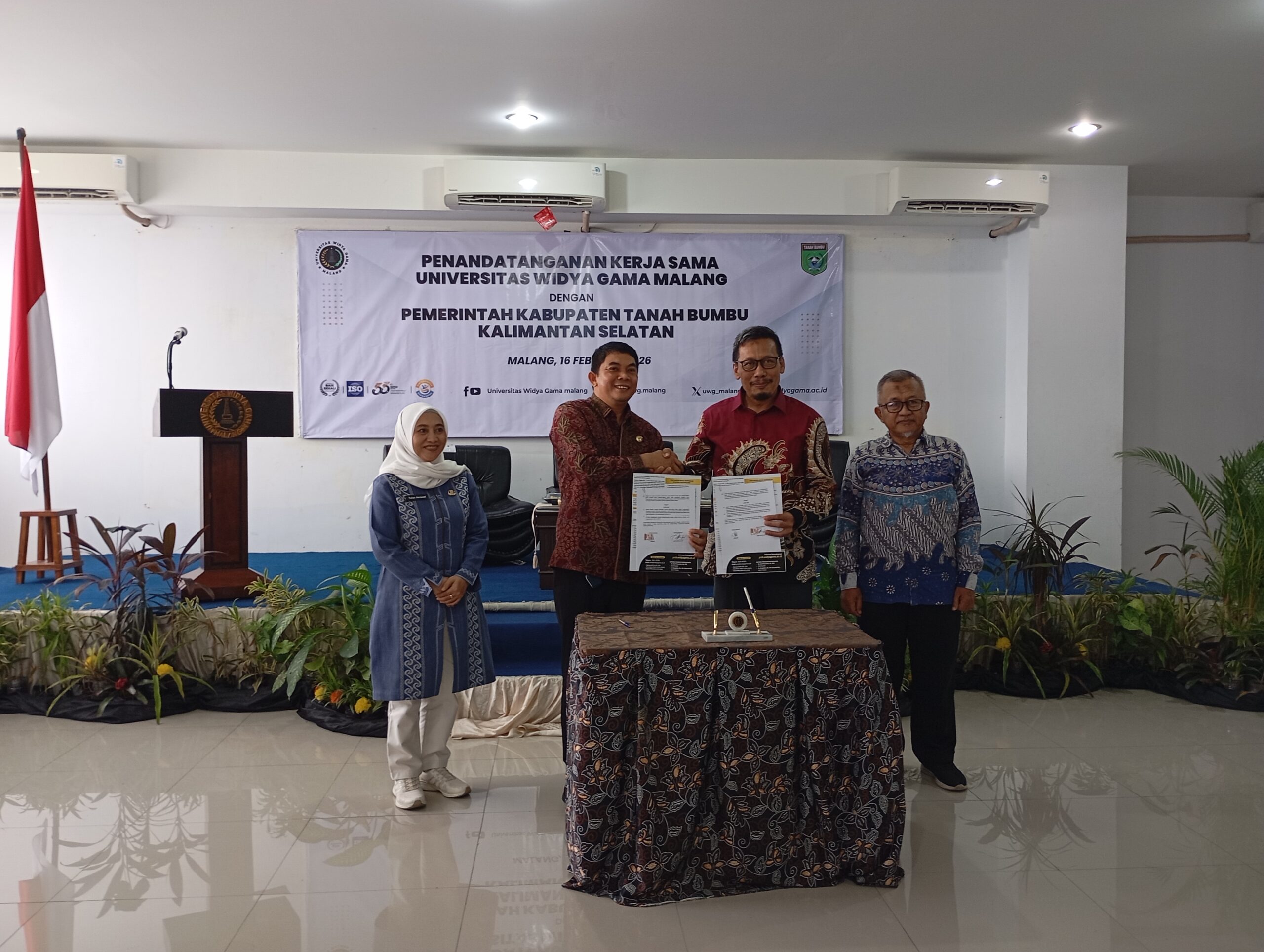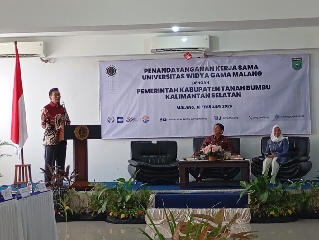 Malang, 16 Februari 2026 – Komitmen memperkuat kualitas sumber daya manusia (SDM) dan pengembangan riset daerah resmi ditegaskan melalui penandatanganan kerja sama antara UWG Malang dan Pemerintah Kabupaten Tanah Bumbu, Kalimantan Selatan.